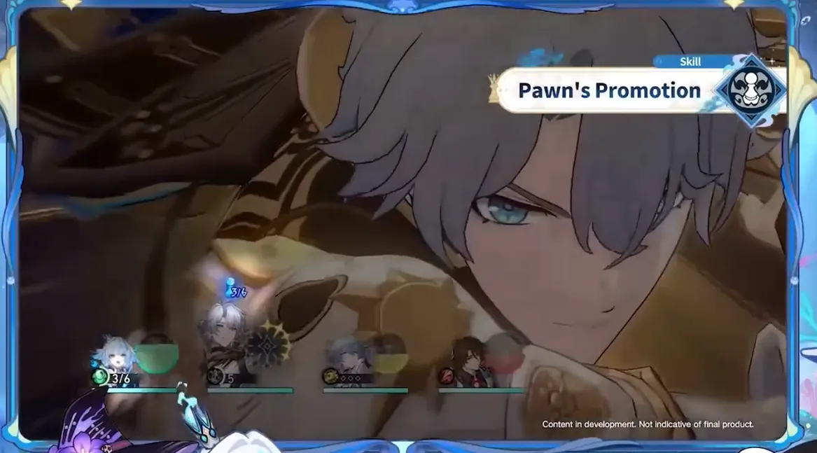 S1効果: 味方が攻撃するたびに、着用者は Cantillation を 1 スタック獲得します。 Cantillation の各スタックは、着用者のエネルギー再生率を 3% 増加させ、最大 5 回までスタックします。着用者がアルティメットを使用すると、カンティレーションが削除され、カデンツァが得られます。カデンツァは着用者のATKを48%増加させ、味方全員の与えるダメージを24%増加させ、1ターン持続します。