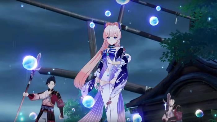 KokomiはGenshinImpact2.1「WorldFloatingUnder the Moonlight」でリリースされ、Mihoyoは、ゲームの公式に記載されているように、雷電将軍とサラに続く、そのアップデートの2番目のイベントバナーに表示されることを確認しました ツイッター アカウント。