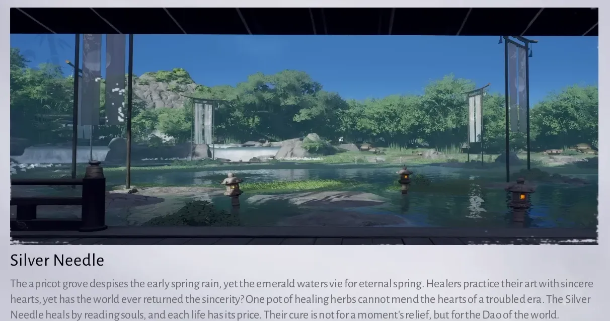 Silver Needle に参加するには、以下にアクセスしてください。 ヒーラー – イニシエイト そしてユアン博士を訪ねてください。 賢者の丘 を始めるために アプリコットグローブ裁判の3つの疑問。 3 人の患者を治療して医療記録を獲得し、それをエントリーの長老に提出すると、銀針宗派への加入が認められます。