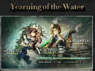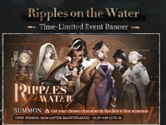 このアップデートパッチ中に利用できる最初の特別バナーは「Ripples on The Water」の期間限定バナーで、プレイヤーは常設プールで利用可能な 6* キャラクターの中からレートアップ対象の 6* キャラクターを 1 人選ぶことができます。プレイヤーが初めてバナー上で 6* キャラクターを獲得すると、獲得した 6* キャラクターは 選ばれた6つであることが保証されます*。プレイヤーはバナーの期間中いつでもバナー上のレートアップキャラクターを自由に変更できますが、確定で選ばれた★6キャラクターはバナーの期間全体で1回のみ適用されます。