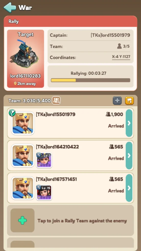 集会を開始すると、同盟メンバーは軍隊やヒーローを送ることができます。重要な部分は、 最初のスロットヒーロー 各メンバーの。そのヒーローはジョイナーヒーローとして扱われます。