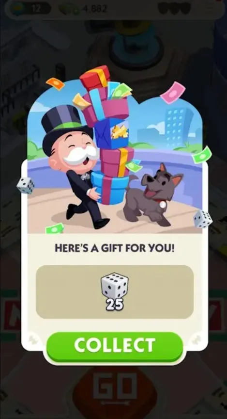 - 一貫したゲームプレイ: モノポリー Go ゲームを毎日プレイするだけで、レベルアップしてボードを完成させると、無料のサイコロロールを獲得できます。