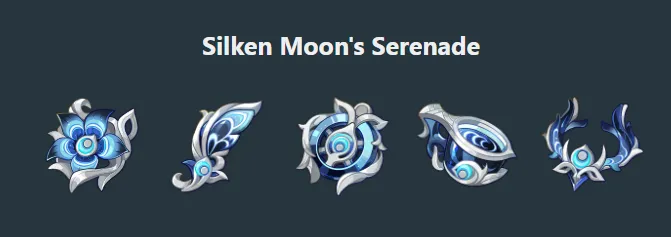 アイノにとって、彼女の最高のアーティファクト セットは シルケンムーンのセレナーデ このセットは、アイノ自身のエネルギー リチャージをブーストしてエレメンタル バーストをより頻繁に使用できるようにするとともに、ムーンフェイズが初期グリームかアセンダント グリームに基づいてアイノがエレメンタル ダメージを与えるときにチーム全体にエレメンタル マスタリー ブーストを与えます(チーム内にノッド クライ キャラクターが 1 人か、チーム内にノッド クライ キャラクターが 2 人のみ)。このアーティファクトは、彼女がチームの強力なエレメンタル マスタリー サポートとなり、月のエレメンタル リアクションのダメージを高めるのに役立ちます。