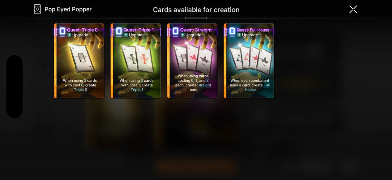 - フルハウス: 各戦闘員にカードを使用させる→ドロー2カードが生成され、カードのドローが大幅に増加します。