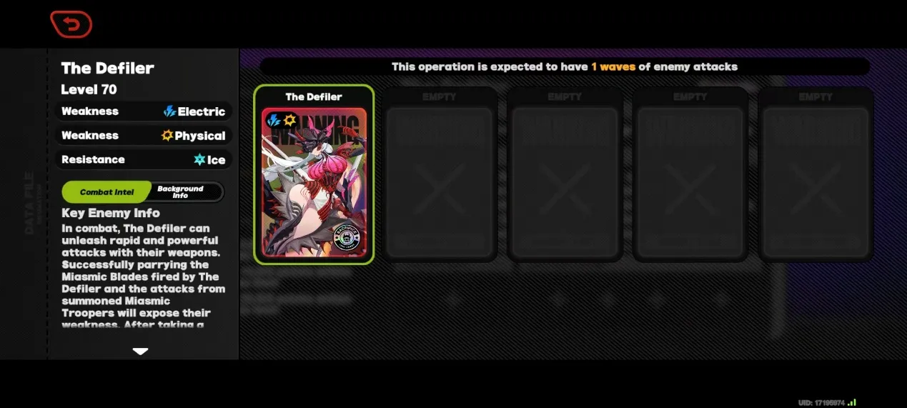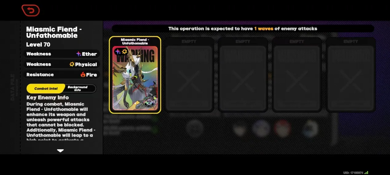 2番目のチームの推奨はボス(Miasmic Fiend)です。敵が異常状態になるたびに、それに対するエージェントの異常ダメージが増加します。物理的およびエーテル的弱点と組み合わせると、この戦いは事実上、ジェーン、アリス、ビビアンなどの異常に焦点を当てたエージェント向けに行われます。
