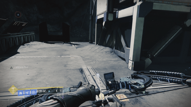 エリアが開くと、別の小さな橋と、ここの崖の開口部が見えるはずです。 開口部の左側にオレンジ色のストライプが1つ付いた灰色のパネルを見つけることができます。