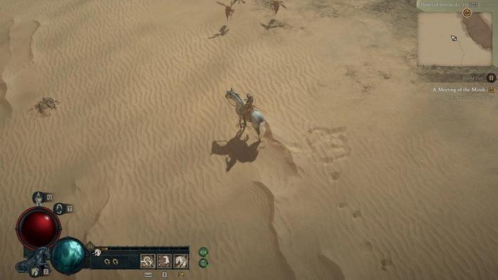 - 長く曲がりくねった旅の末、砂嵐が吹き荒れる砂漠を越えなければならないクエストがあります。