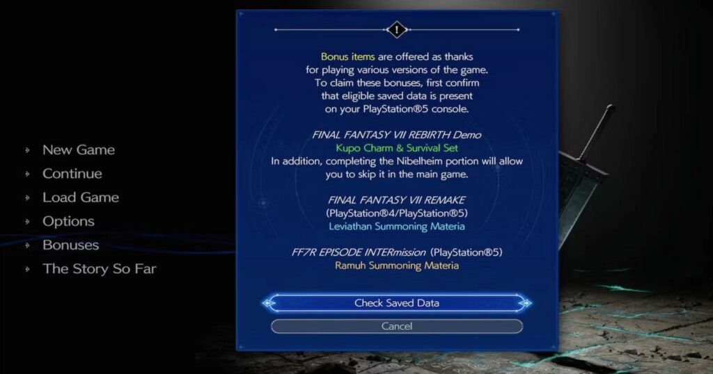 Final Fantasy 7 Rebirth セーブゲームの報酬を受け取る方法
