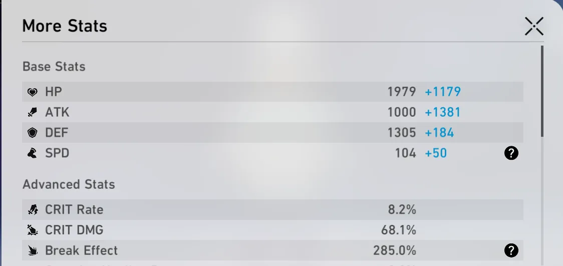 - 最後に、彼女の 3 番目のボーナス能力により、追加の能力が付与されます。 ブレイクエフェクト 彼女の攻撃ステータスに比例し、上限はありません。