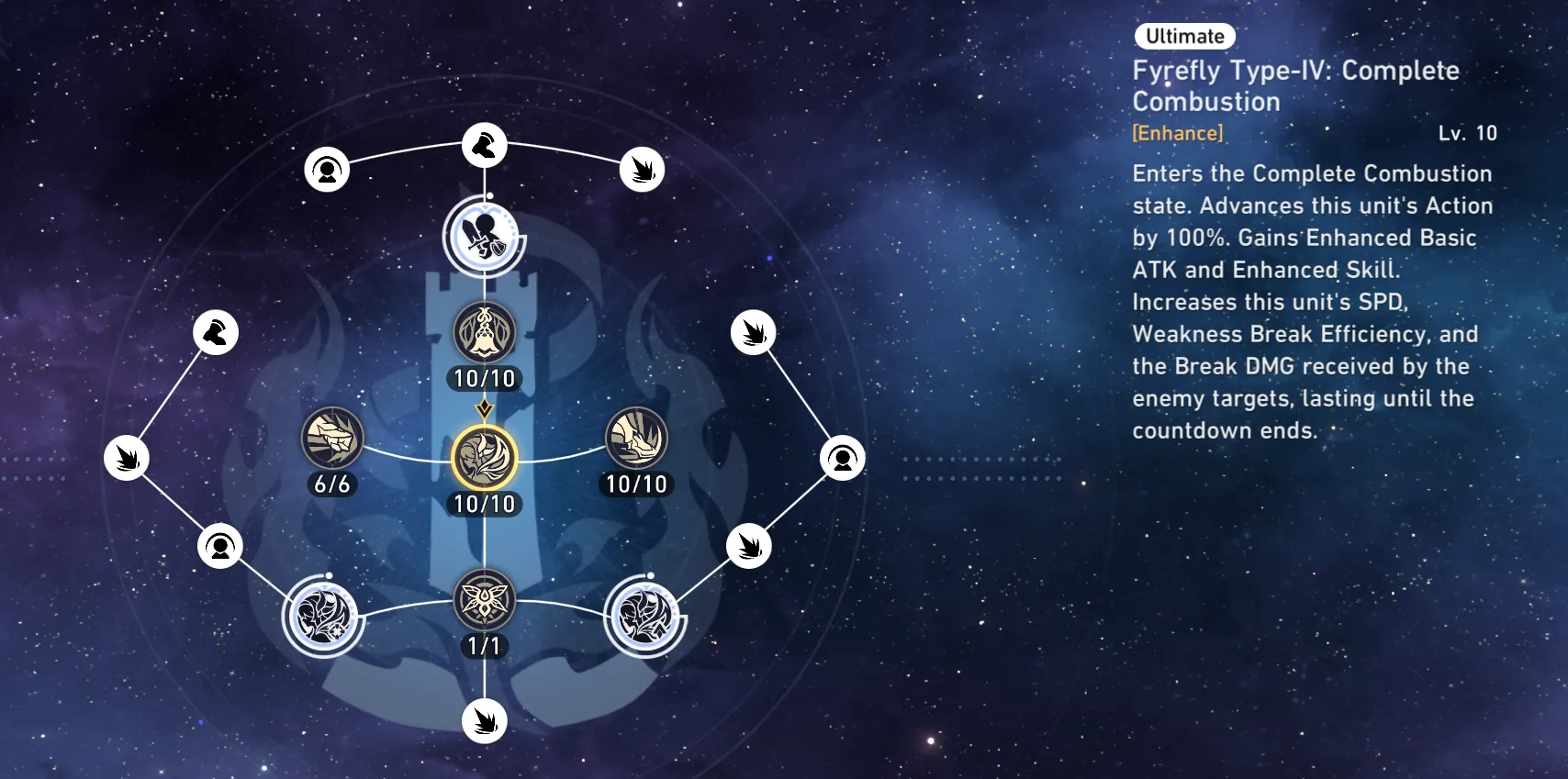 Firefly はブレイク中心の DPS キャラクターであるため、ブレイク効果ダメージはスキルやアルティメット ダメージ修正子の影響を受けないため、彼女のトレースと能力の大部分は実際にはそれほど投資する必要はありません。