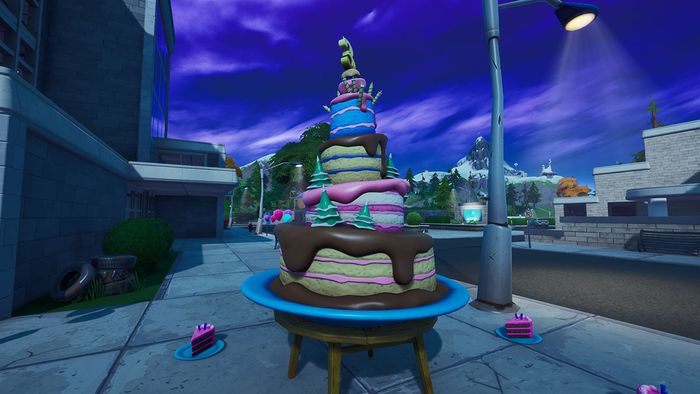 フォートナイトバースデーチャレンジ中にプレイヤーがアポロ島周辺を探索しているときに、小さなケーキが周囲にある巨大なケーキに出くわします。