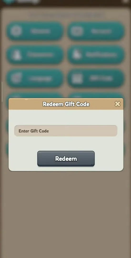- クリックすると、テキスト ボックスのあるダイアログ ボックスが開きます。テキスト ボックスに、Kingshot コードをコピーして貼り付けます。