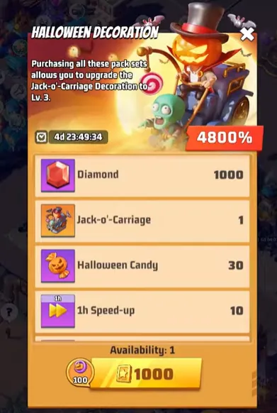 • ハロウィンギフト ソウル大釜の装飾のロックを解除してアップグレードするマイルストーンを提供しますが、完全に購入ベースであり、プレイヤーはイベント パックの購入で獲得した少なくとも 100 個のパンプキン トークンを収集する必要があります。