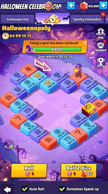 • ハロウィーン独占 ミニイベントは、ハロウィーン バウチャーやその他の報酬を獲得するための主な方法であり、ボード上を移動して賞品を集めるシンプルなサイコロを振るボード ゲームを特徴としています。