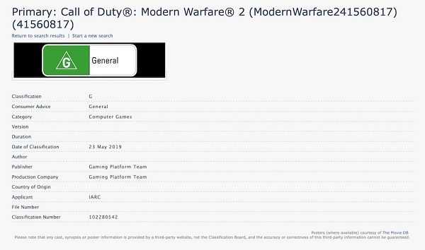 5月末にかけて、オーストラリアの分類委員会がCall of Duty:Modern Warfare 2Remasteredを15歳以上と記載していることにファンが気づきました。