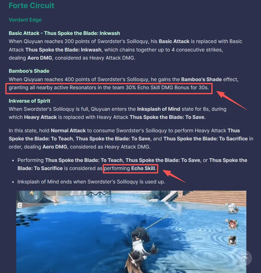 Qiuyuan は、以下を専門とするサポートサブ DPS です。 エコースキルダメージ増加。彼のコアメカニックはスタックを蓄積して「剣士の独り言」→「竹の陰」をトリガーし、アクティブな味方に大幅な共鳴スキルダメージボーナスを与え、チームバーストの可能性を大幅に高めます。彼はエアロソード攻撃を通じてまともなサブ DPS を与えることができますが、 彼の真の価値は、チームメイトのエコースキルの出力を増幅させることにあります。共鳴スキルに依存するチームは彼の恩恵を大きく受け、Qiuyuan をチームの有用性を重視した 5 つ星のユニットにしています。