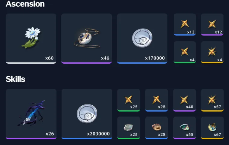 LFウィスパリンコア — 4 MF ウィスパリンコア — 12 HF ウィスパリン コア — 12 FFウィスパリンコア — 4 嘘の中の真実 — 46 ウィンターベル — 60 シェルクレジット — 170,000 |