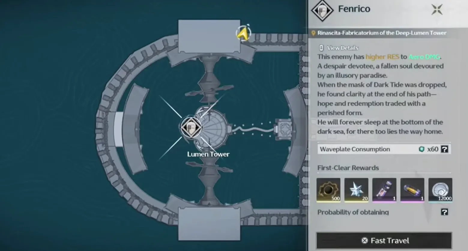 真実の中の嘘は、深層のファブリカトルムのルーメンタワーの場所でフェンリコを倒した後に入手できます。また、ボス チャレンジでフェンリコを追跡することで、早期にフェンリコにアクセスできるようになります。