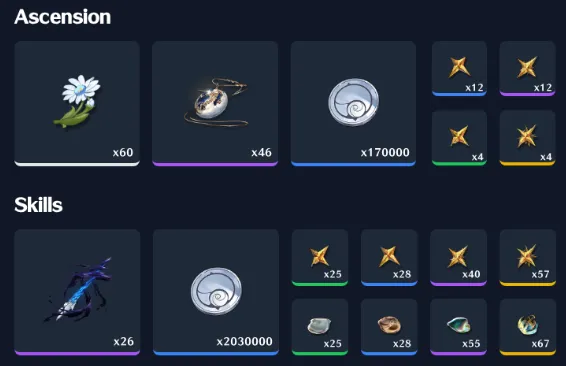 Qiuyuan のスキルをアップグレードするためのすべての材料は次のとおりです。