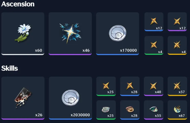 LFウィスパリンコア — 4 MF ウィスパリンコア — 12 HF ウィスパリン コア — 12 FFウィスパリンコア — 4 音を保つタセットコア — 46 ウィンターベル — 60 シェルクレジット — 170,000 |