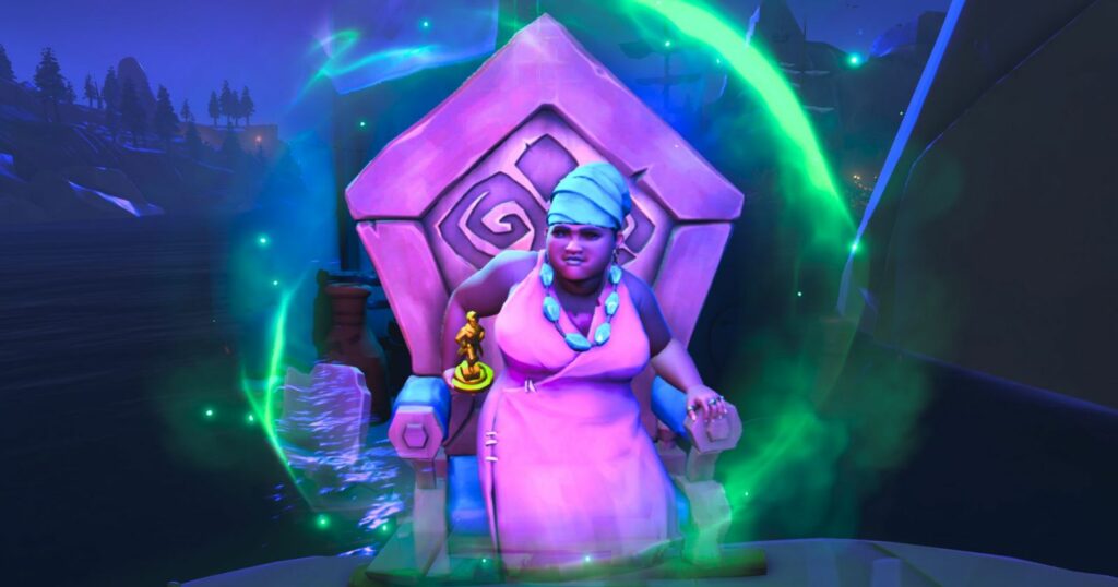 トロフィーを獲得すると、コリーナがポータルから現れます。 彼女にトロフィーを与えて、宝探しの試練を完了し、チェックポイントに到達してください。