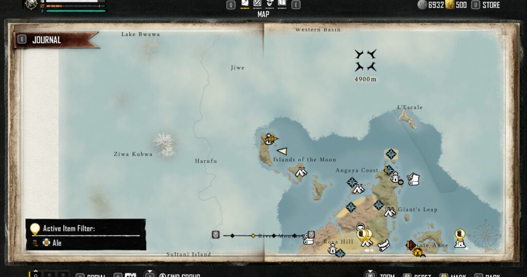 - 航海を続ける 北西 そこから入るには 月の島々 ゾーン。