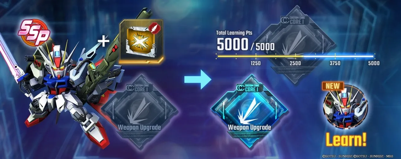 SSP 変換で獲得した武器はカスタム コアを介してのみ強化でき、標準の武器レベリングは使用できません。これは、低レアリティのユニットが UR を駆逐することを防ぐための意図的なバランス措置です。全体として、SSP 変換は、UR を重ねるだけでなく、開発リストと SR/SSR ユニットの幅広い使用を奨励し、レアリティのバランスを維持しながら名簿の多様性を高めます。このシステムはプレイヤー レベル 15 でロックが解除され、ゲーム初期の進行に影響を与えることなくアクセスできるようになります。