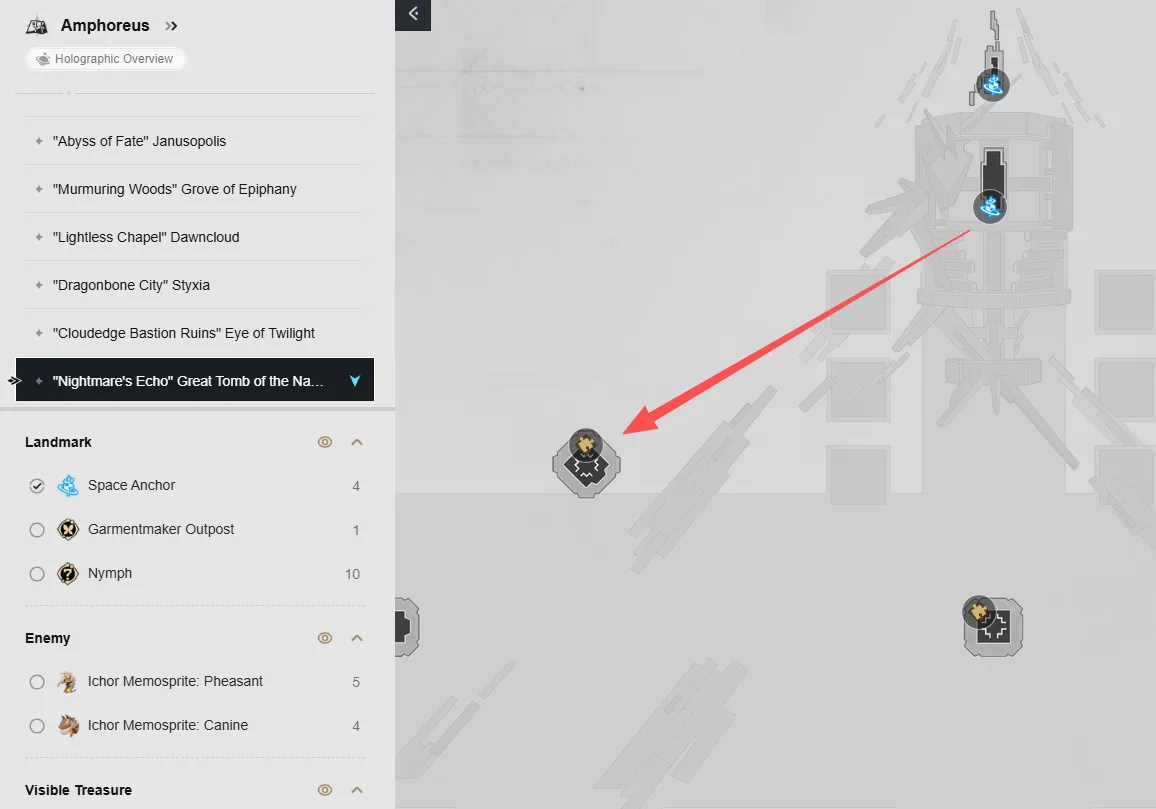 3 つ目は、Passage of Treasures スペース アンカーの隣の部屋内にあります。部屋に入り、階段を下りてエレベーターで2階へ行きます。植物の近くにスケープゴートが見えます。