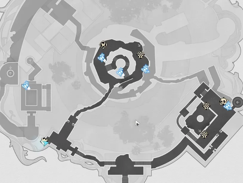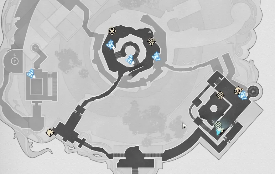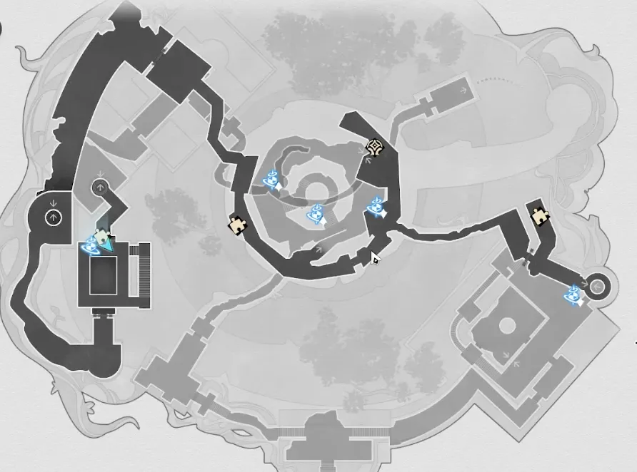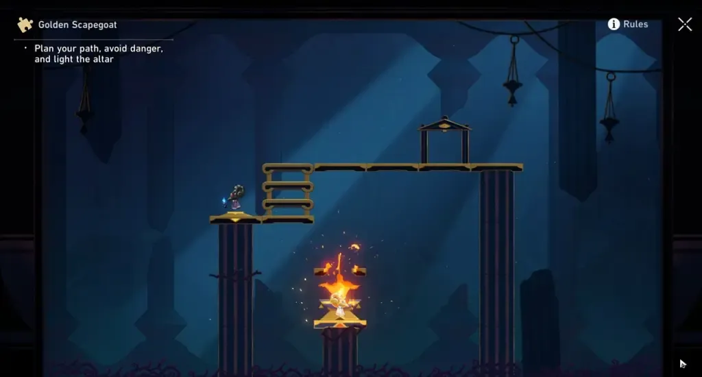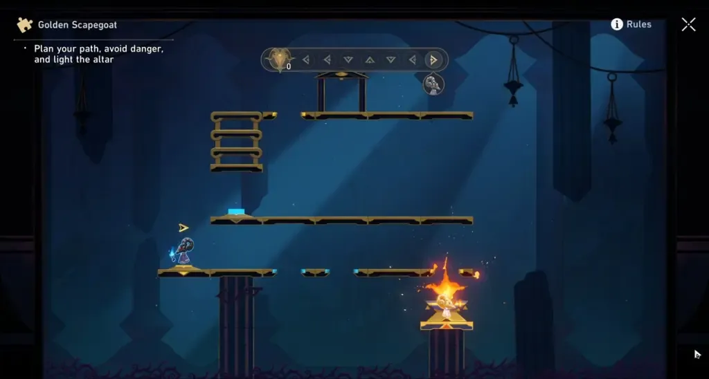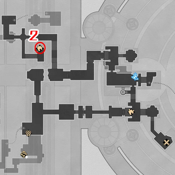 Aedes Elysiae の 2 番目の Golden Scapegoat パズルは、聖餐の中庭スペース アンカーの北西にあります。そこに到達するには、聖餐の中庭のスペース アンカーを利用して、もう一度北、西、北へと旅します。 Golden Scapegoat パズルに到達したら、次の手順に従って解決してください。