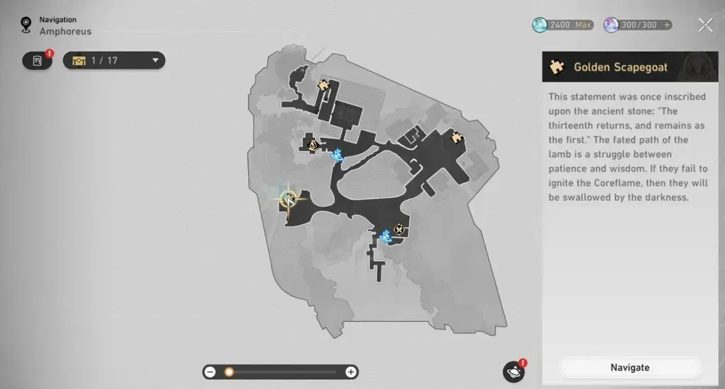 スケープゴートはB1の大部屋の中にいます。キャンドルの陰気な祭壇スペースアンカーを使用して、左側の大きな部屋に進みます。 2階まで上がってからエレベーターで3階までお越しください。奇跡の書を使用して時間を永遠に移すと、道の終わりにスケープゴートが表示されます。