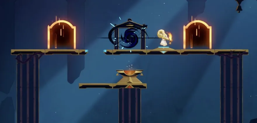 フォーセイクン レルム プラットフォーム スペース アンカーから出発して、ヤドリギに乗り、2 番目のゴールデン スケープゴートに向かって西へ向かいます。プラットフォームに着いたら、必ず隠し通路を通ってパズルに到達してください。