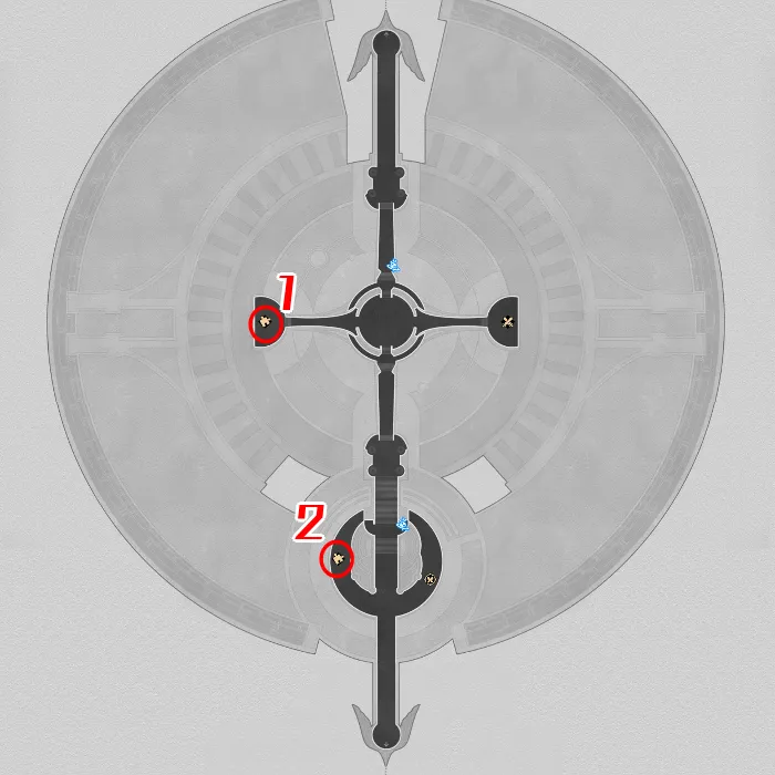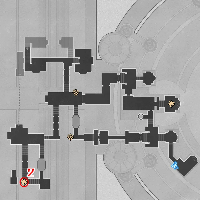 Aedes Elysiae の 2 番目の Golden Scapegoat パズルは、聖餐の中庭スペース アンカーの北西にあります。そこに到達するには、聖餐の中庭のスペース アンカーを利用して、もう一度北、西、北へと旅します。 Golden Scapegoat パズルに到達したら、次の手順に従って解決してください。